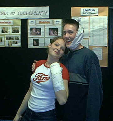 Mel and Phil preparing for their group's improvisation about two characters who'd burned down an orphanage and killed people. This was one of the ideas that didn't make the cut.